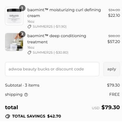 Your locks are going to love you for it! Save 35% OFF your adwoa beauty purchase of $40+ for a LIMITED TIME ONLY! Whether you’re shopping the fizz fighting yummy Melonberry Collection or need the root to tip healing from the bestselling Baomint Moisturizing Collection, stock up on your must haves and save today!