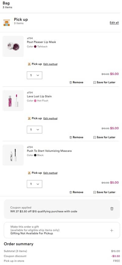 Activate any points multiplier offers you may have available to you. Use the code 440029 (click to copy) to save $3.50 OFF your non prestige purchase of $15+. FREE SHIPPING applies at $25+ for Diamond members and $35+ for everyone else or choose buy online pick up in store if available in your area and use the code AUGUSTPICKUP (click to copy) to save $10 OFF your $40 BOPIS order. Exclusions apply. Check out our other favorite Ulta Beauty finds!