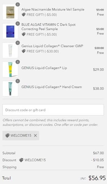 We love a FULL SIZE freebie! Receive a FREE Algenist GENIUS Liquid Collagen Cleanser with any $50 purchase WHILE SUPPLIES LAST! This foaming cleanser will remove even the toughest makeup without drying or stripping your skin! New customers use the Algenist coupon code WELCOME15 (click to copy) to save 15% OFF your first purchase!