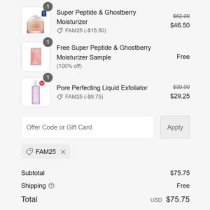 Get your glow on with savings on luxurious skincare! For a LIMITED TIME ONLY take 25% OFF Alpyn Beauty during their Friends & Family Sale Event! This sale even includes the newest members of the Alpyn Beauty family, the Super Peptide & Ghostberry Moisturizer and the Pore Perfecting Liquid Exfoliator! Leave your complexion soft and supple!