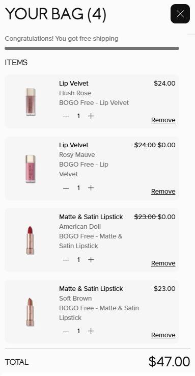 Don’t have FOMO on this lippie BOGO Besties! Select Anastasia Beverly Hills Lipstick favorites are Buy 1 Get 1 FREE for a LIMITED TIME ONLY! Add 2 like items to cart (you can mix and match shades) and one will become FREE! Choose from the weightless Lip Velvet Liquid Lipstick, Matte Lipstick, Satin Lipstick, and the full pigment Lip Liner!