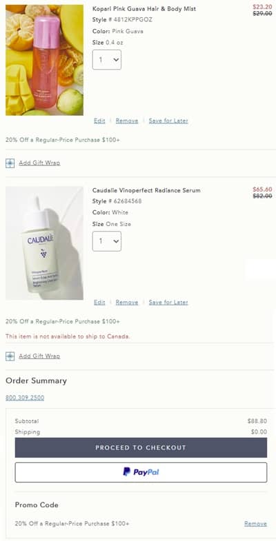 *Excludes: Sale items, Dr. Loretta, Etat Libre d’Orange, Juliette Has A Gun, NuFACE, Outset, Parfums De Marly, Supergoop!, and Vilhelm Parfumerie. Other exclusions may apply.