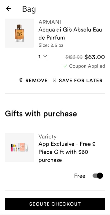- APP Exclusive FREE 9 Piece Gift with any $60 purchase