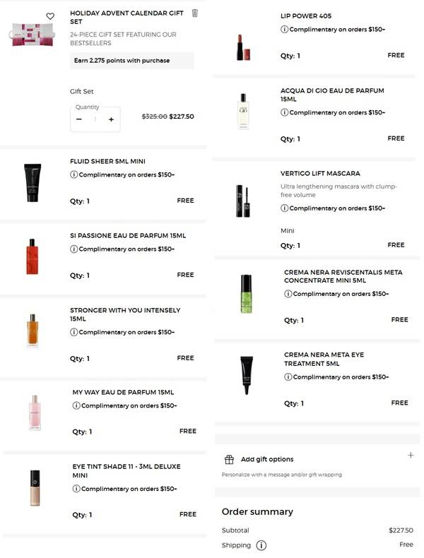 You deserve a little treat Besties! Save 30% OFF the Armani Advent Calendar 2025 with FREE SHIPPING for a LIMITED TIME ONLY! PLUS you’ll receive a FREE 10 Piece Gift! This luxurious set is filled with 24 items including 2 FULL SIZE Prisma Glass Lip Gloss, 2 FULL SIZE Eye Tint Long-Lasting Liquid Eyeshadow, a Luminous Silk Acqua Highlighter, and so much more! Take a look at our value breakdown below to help you decide if the Armani Advent Calendar 2025 is worth adding to cart!