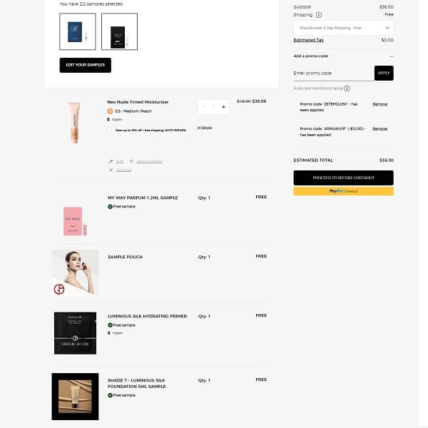 Use the Armani Beauty coupon code GLOWLOOKS to add the discount to your cart. Don’t forget to choose your FREE samples. FREE SHIPPING applies to orders $75+ or FREE SHIPPING on select qualifying orders with ShopRunner. If you don’t have a ShopRunner account you can sign up for a FREE 1 year membership courtesy of Paypal and get FREE 2-DAY SHIPPING at some of your favorite stores! Exclusions apply.* Take a look at our other favorite deals!