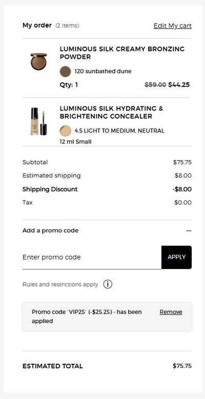 Sign in to your Armani Signature VIP account and use the coupon code VIP25 (click to copy) to add the discount to cart. Don’t forget to choose your FREE samples. FREE SHIPPING applies to orders $75+. Exclusions apply.* Take a look at our other favorite finds!