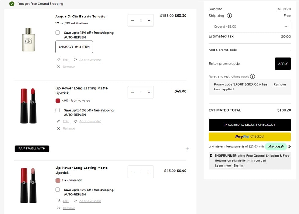 BOGO FREE on luxury beauty? Yes, please! Enjoy Armani Beauty VIP access to savings! When you buy 1 select icon, you’ll get a second matching one for FREE! Add 2 like items to cart, you can choose different shades, and use the Armani Beauty coupon code 2FOR1 (click to copy) and one will become FREE!