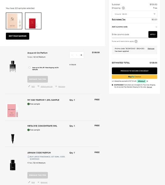 Use the Armani coupon code SCENTDUO in cart and you will be prompted to choose a FREE 30ml fragrance with your qualifying order! FREE SHIPPING applies automatically at checkout. Exclusions may apply. Take a look at our other favorite deals!