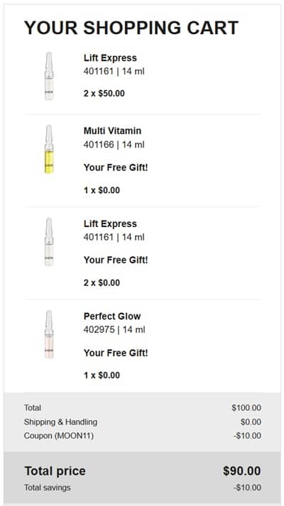 Upgrade your skincare routine with a targeted treatment from BABOR! For a LIMITED TIME ONLY add 1 eligible BABOR Ampoule Concentrate Set to cart and you’ll get a second for FREE! To make the deal even sweeter receive a FREE FULL SIZE Multi Vitamin AND Perfect Glow Ampoule Serum Concentrate Set, a $90 value, with any $55 purchase WHILE SUPPLIES LAST! Check out our example cart below!