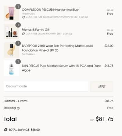 No code needed, bareMinerals Friends & Family items are priced as marked. You will be prompted add and choose your FREE gifts with purchase in cart once your order qualifies. FREE SHIPPING applies to orders $50+. Exclusions apply.* Take a look at our other favorite finds!