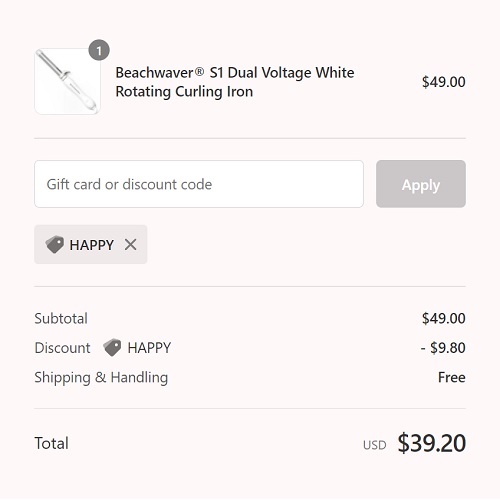 Use the Beachwaver promo code HAPPY to add the discount to your cart. FREE SHIPPING will apply automatically at checkout.