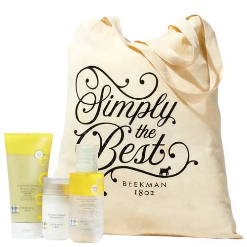 Treat yourself to this limited edition kit WHILE SUPPLIES LAST! The Beekman 1802 Simply the Best Skincare Tote is only $78 with FREE SHIPPING! You’ll find a FULL SIZE of the lightweight yet ultra-hydrating Bloom Cream Daily Moisturizer (a $54 value alone), plus a FULL SIZE body scrub, and FULL SIZE Milk Shake Hyaluronic Acid & Squalane Facial Toner Mist inside a cute tote bag! Orders $95+ also receive a FREE deluxe sized sample of the Dewy Eyed Illuminating & Depuffing Eye Serum!