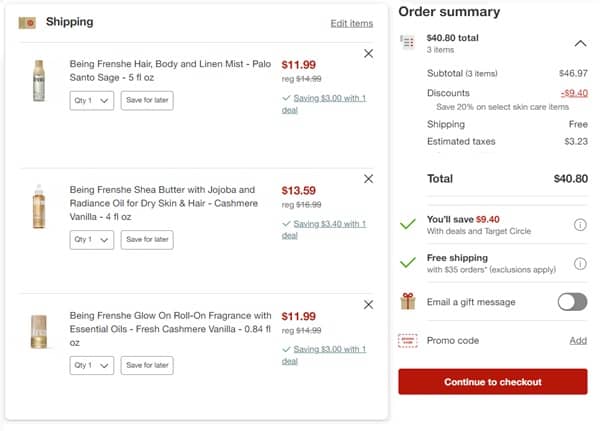 Savings never smelled so good Besties! Take 20% OFF budget friendly Being Frenshe, beauty and personal care from Ashley Tisdale! You must be signed into your Target Circle account (free to join) and save this offer to your account. Here’s your chance to add the yummy Soothe & Comfort Cashmere Vanilla Collection to your routine! Vanilla, toasted jasmine rice, amber and musk available in an eau de parfum, body wash, deodorant, and more!