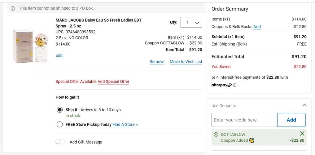 Use the Belk coupon code GOTTAGLOW to add the discount to your cart. FREE SHIPPING applies to orders $75+ or choose FREE in store pick up if available in your area! Exclusions apply.* Take a look at our other favorite deals!