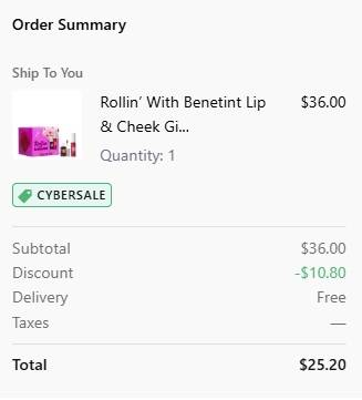 Use the Benefit Cosmetics Black Friday coupon code CYBERSALE (click to copy) to add the discount to cart. FREE SHIPPING applies automatically at checkout. Exclusions may apply. 1 code per order. Take a look at our other favorite finds!