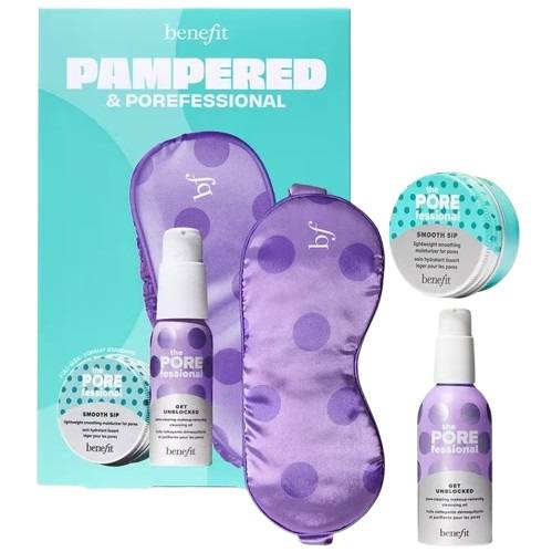 Great for gifting or keeping all to yourself! Save 40% OFF select Benefit Cosmetics Value Sets WHILE SUPPLIES LAST at Macy’s! Stock up on your mascara favorite or treat yourself to the Pampered & Porefessional Unwind Set! A $62 value, this kit includes a FULL SIZE POREfessional Smooth Sip Moisturizer, a POREfessional Get Unblocked Oil Cleansing mini PLUS a signature sleeping mask! Yours for only $29.40 while they last! Enjoy FREE gifts with your qualifying purchase: