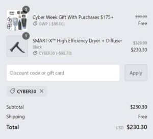 Use the Bio Ionic Black Friday coupon code CYBER30 (click to copy) to add the discount to cart. The FREE gift with purchase will add automatically once your order qualifies. FREE SHIPPING applies to orders $99+. Exclusions may apply. Take a look at out other favorite finds!