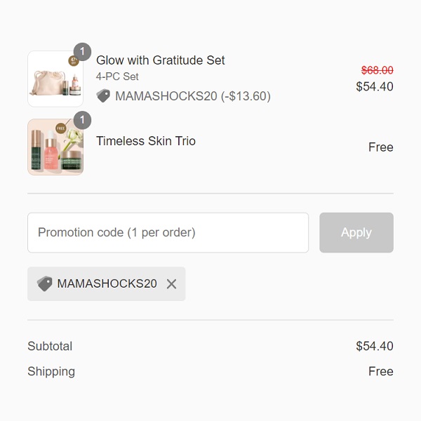 Besties, this deal has it ALL! Additional SAVINGS, FREE gifts and FREE SHIPPING! The Biossance Glow With Gratitude Set, a $129 value, is only $68 PLUS use the code MAMASHOCKS20 (new customers/emails) to save an additional 20% OFF bringing the price down to $54.40! This set includes a FULL SIZE Squalane + Omega Repair Cream valued at $58 alone! To make the deal even better a FREE Timeless Skin Trio will be added to your cart automatically PLUS you’ll get FREE SHIPPING!