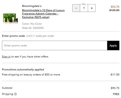 No code needed, priced as marked. The FREE gift with purchase will add to cart once your order qualifies. FREE SHIPPING applies automatically at checkout. Take a look at our other 2024 Advent Calendar value breakdowns!