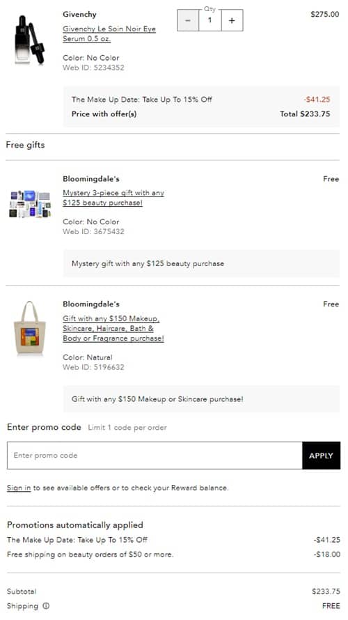 Save on all of your luxury faves! Take 15% OFF your $250+ Beauty and Fragrance purchase at Bloomingdale’s for a LIMITED TIME ONLY! Orders $100+ save 10% OFF so pull out that wish list and start adding it to cart! It gets better! Receive a FREE 3 Piece Mystery Gift with your $125 beauty purchase or step up to a $150 order and you’ll also receive a FREE Bloomingdale’s Canvas Tote Bag!