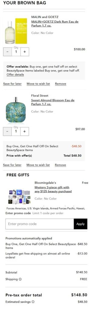 No code needed, eligible Bloomingdale’s Beautyspace items are marked “Buy one, get one half off”. The FREE gift with purchase will add once your order qualifies. FREE SHIPPING applies automatically at checkout. Exclusions apply. Take a look at our other favorite finds!