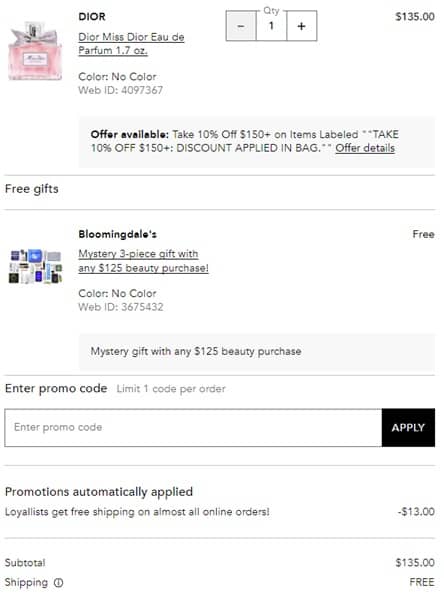 Treat yourself (or the scent lover in your life) to something new! Loyallist members (free to join) take 10% OFF your fragrance purchase of $150+ with FREE SHIPPING at Bloomingdale’s! Fruity florals, aromatic vanilla, refreshing citrus and every thing in between from your favorite brands like Maison Francis Kurkdjian, Byredo, Parfums de Marly, Kilian, and so many more! Add to cart Besties! Choose your FREE 3 Piece Mystery Gift with any $125 beauty purchase in cart!
