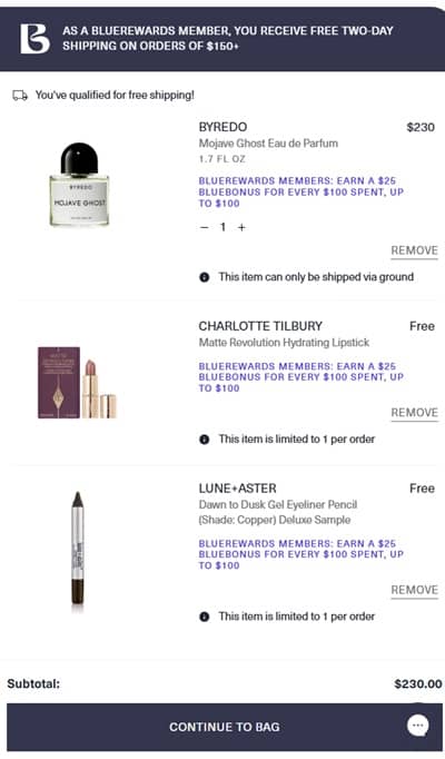 No code needed. Sign in to your Bluemercury BlueRewards account to earn the BlueBonus rewards on qualifying orders. BlueRewards members also enjoy FREE SHIPPING which applies automatically at checkout. Exclusions may apply. Take a look at our other favorite finds!