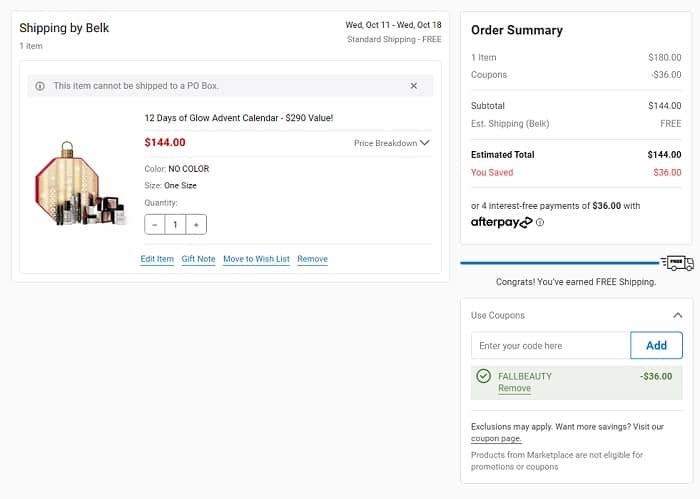 Use the Belk coupon code FALLBEAUTY to add the discount to your cart. FREE SHIPPING applies automatically at checkout or choose FREE in store pick up if available in your area! Take a look at our other 2023 Advent Calendar value breakdowns!