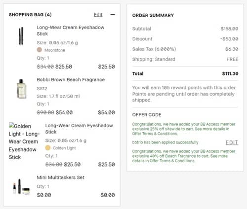 Get VIP Exclusive access to savings! Take 25% OFF your must haves and FREE SHIPPING for Bobbi Brown BBAccess members (free to join)! You’ll also save 40% OFF the light and summery Beach Eau de Parfum! Receive a FREE Mini Bestsellers Duo with any $50 purchase using the code MUSTS (click to copy) or step up to a $90 order to receive a FREE Favorites Trio using the coupon code BBTRIO.