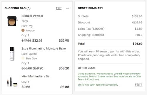 Sign in to your BBAccess account for the eligible Bobbi Brown cheek items to be discounted in cart. One coupon code per order. Bobbi Brown BBAccess Members (free to join) enjoy FREE SHIPPING on all orders, FREE SHIPPING applies to orders $65+ for non members. Take a look at our other favorite finds!