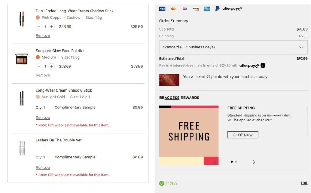 Sign in to your rewards account (free to join) and use the code FRIDAY2 to add the gifts to your cart. BB Access account holders also enjoy FREE SHIPPING.