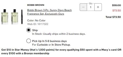 BONUS POINTS ALERT! You’ll receive $10 in Star Money for every qualifying purchase made with a Macy’s Credit Card OR every $100 with a Bronze membership (free to join)!