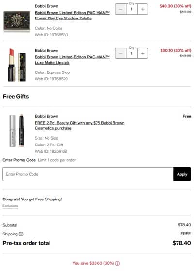 No code needed, Bobbi Brown x PAC-MAN items priced as marked. The FREE gift with purchase will add to cart once your order qualifies. FREE SHIPPING applies to orders $25+ or choose FREE in store pick up if the items are available in your area. Take a look at our other favorite finds!