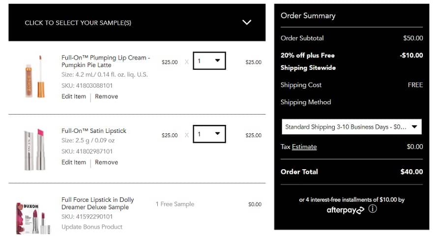 Savings PLUS FREE SHIPPING? Yes, please! Take 20% OFF sitewide at Buxom PLUS get FREE SHIPPING with no minimum purchase required during their Goodbye Summer Sale Event! Here’s your chance to add the new creamy Full-On Satin Lipstick to your lippie wardrobe or get ready for PSL season with the high shine Plumping Lip Cream in the newest shade Pumpkin Pie Latte!