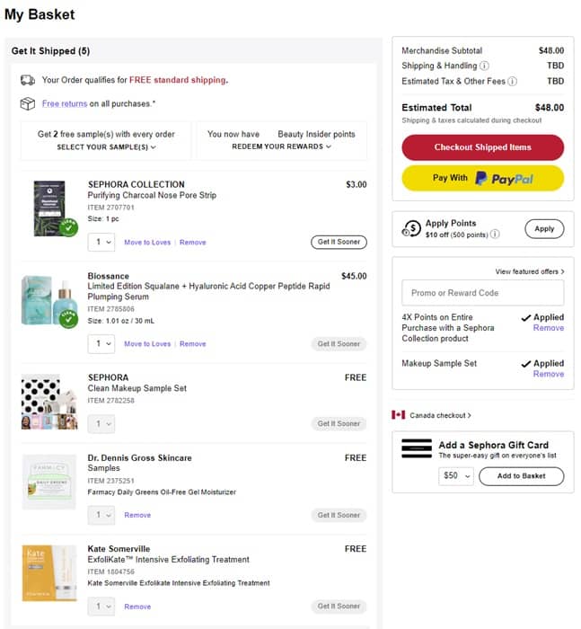 Sign in to your account and use the Sephora coupon code SC4XPOINTS (click to copy) to add to cart. This offer will combine so a gift with purchase may be available for your qualifying order plus be sure to add your FREE samples. The bonus points will be automatically credited to your account within 24 hours after purchase or 24 hours after your Buy Online, Pick Up In Store order has been picked up. FREE SHIPPING applies to all orders for Beauty Insider members! Take a look at our other favorite Sephora finds!