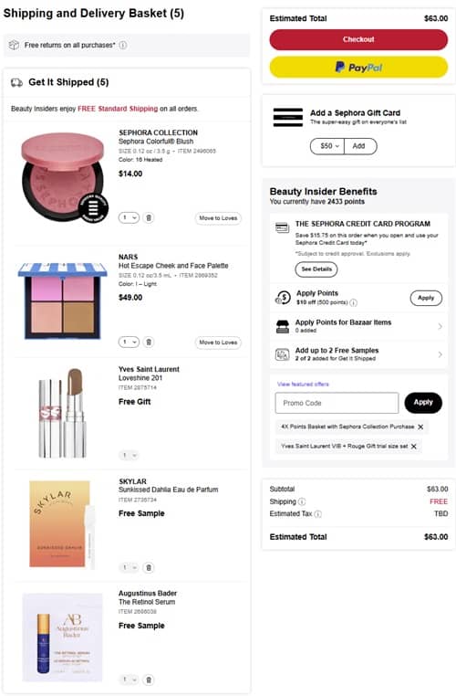 Sign in to your Beauty Insider account and use the Sephora coupon code SC4XPTS (click to copy) to add the offer to cart. This offer does combine with FREE gifts with purchase if your order qualifies! Don’t forget to add your FREE samples. The bonus points will be automatically credited to your account within 24 hours after purchase or 24 hours after your Buy Online, Pick Up In Store order has been picked up. FREE SHIPPING applies to all orders for Beauty Insider members! Take a look at our other favorite Sephora finds!