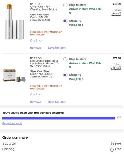 Enjoy a little luxury for HALF OFF! Save 50% OFF select Byredo makeup essentials WHILE SUPPLIES LAST at Nordstrom Rack! Choose from eyeshadow palettes, mascara, lippies, liners, and more! Add a new shade of the creamy multiuse Color Stick for Cheeks, Eyes & Lips to your collection! Buildable color with a dewy matte finish, swipe on and go!