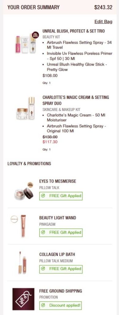 No code needed, your FREE Charlotte Tilbury gifts with purchase will add to cart once your order qualifies. Don’t forget to add your FREE samples. Loyalty Members receive FREE SHIPPING so be sure to sign in. Take a look at our other favorite finds!