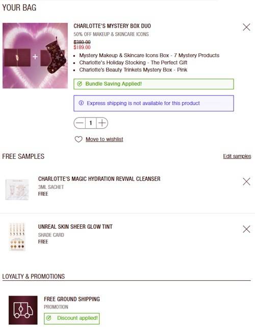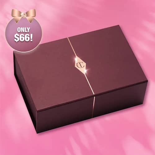 Charlotte is treating us to red carpet surprises! WHILE SUPPLIES LAST score your choice of NEW Charlotte Tilbury Mystery Box for HALF OFF PLUS FREE SHIPPING! We don’t know exactly what’s inside but we’re excited to find out! This year we have 2 NEW boxes, your choice of peach or pink, and a Stocking, plus bundles!