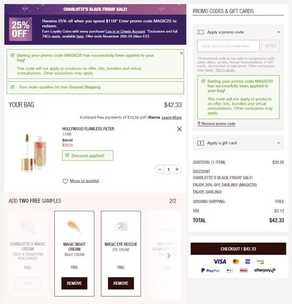 Use the Charlotte Tilbury Black Friday code listed below to add the discount to your cart. Sign in to your account (free to join) for FREE SHIPPING. Excludes already reduced and sale items. Take a look at our other favorite finds!
