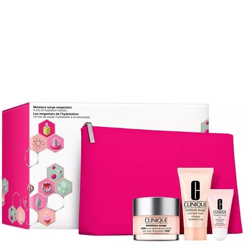 This sale is going, going, almost gone! Don’t miss out on HALF OFF savings Besties! Take 50% OFF Clinique Gift Sets PLUS you’ll receive your choice of 2 FREE skincare and makeup samples with any $60 Clinique purchase at Macy’s! For only $23.50 you can pick up the Moisture Surge Megastars Hydrating Skincare 4 Piece Set! This $73.50 value includes a FULL SIZE of one of our favorites, the 100H Auto-Replenishing Hydrator for long lasting hydration! At this price, get 2!
