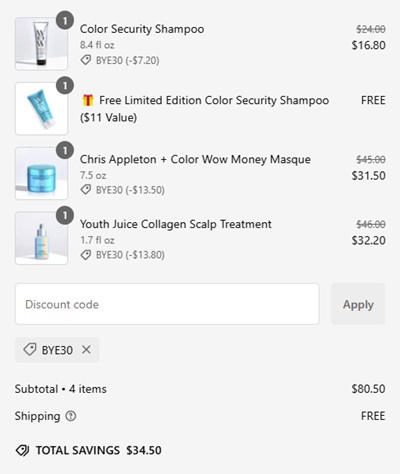 Say hello to your best hair days ever with COLOR WOW! For a LIMITED TIME ONLY save UP TO 30% OFF PLUS receive a FREE Travel Size Limited Edition Color Security Shampoo with any $65 purchase! Step up to a $150 order and you’ll also receive a FREE Wow Paddle Brush! This offer does include the newest Youth Juice Collagen Scalp Treatment! Tackle shedding and promote thicker, stronger hair!