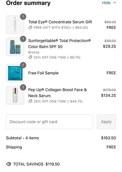 - FREE FULL SIZE Total Eye Concentrate Serum with any $150 purchase ($65 value)
