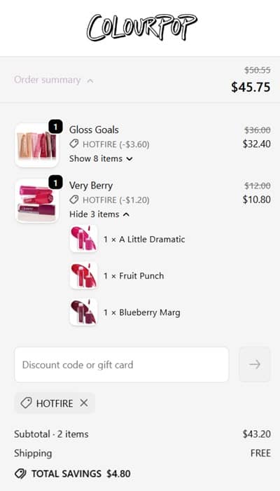 Use the coupon code HOTFIRE (click to copy) to add the discount at checkout. FREE SHIPPING applies to orders $35+. Excludes Holiday Mystery Box, Fresh Kiss Glossy Balm with Shimmer, Multi-Chrome Shadow Stix, and the Super Shock Shadow Trios. Take a look at our other favorite finds!