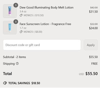 Stock up now, you’ll thank yourself later! Save 25% OFF your sun care must haves during the COOLA Summer Sale Event! Restock your favorite Clear Sunscreen Spray in yummy scents like guava mango, piña colada, tropical coconut, peach blossom, and fragrance free! Or add the bestselling Dew Good Illuminating Serum SPF30 to your skincare routine! This multi-tasking treatment serum brightens, hydrates, and keeps you safe in the sun!