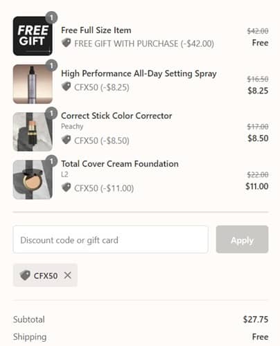 Use the Cover FX coupon code CFX50 (click to copy) to add the discount to your cart. The FREE gift with purchase will add once your order qualifies. FREE SHIPPING applies automatically at checkout. Exclusions may apply. Take a look at our other favorite finds!
