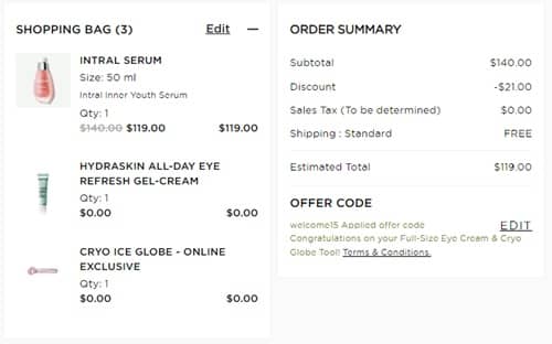 Treat yourself to luxury skincare! You deserve it! Receive a FREE Darphin Hydraskin Eye Cream & Cryo Globe with any $115 purchase! Better yet, new customers save 15% OFF your first purchase using the code below! That’s a FULL SIZE Hydraskin ALL-DAY Eye Refresh Gel-Cream, regularly $50, to address puffiness and hydrate PLUS a glass cooling cryotherapy massager to revitalize your tired eyes!