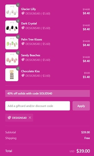 Use the Dashing Diva coupon code DESIGNS40 (click to copy) to add the discount to your qualifying cart. FREE SHIPPING applies to orders $25+. Take a look at our other favorite deals!