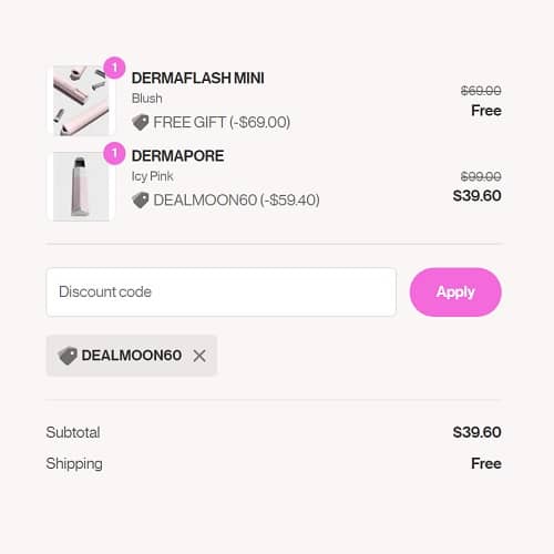 Use the DERMAFLASH coupon code DEALMOON60 to add the discount to your cart. The DERMAFLASH Mini will add to your qualifying order automatically. FREE SHIPPING applies automatically at checkout. Take a peek at our other favorite deals!
