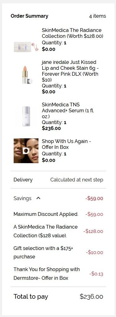 Your cart is calling you Besties! Save UP TO 20% OFF select Dermstore beauty favorites for a LIMITED TIME ONLY! Choose makeup, skincare, hair care, and fragrance from brands like Sunday Riley, Medik8, SkinMedica, EltaMD, and so many more! Add. To Cart! Receive your choice of FREE deluxe sample with any $175 purchase, or 2 FREE with orders $275+!